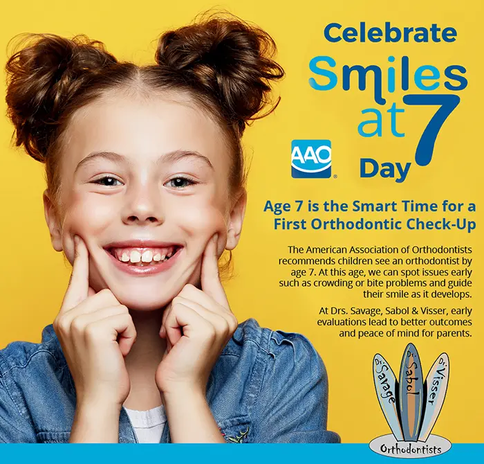 The American Association of Orthodontists recommends that every child have an orthodontic evaluation by age 7 or earlier if a problem is detected. Although treatment may not begin at this young age, Drs. Savage, Sabol & Visser may elect to monitor your child’s growth and dental development. Early detection greatly reduces the need for removal of permanent teeth.